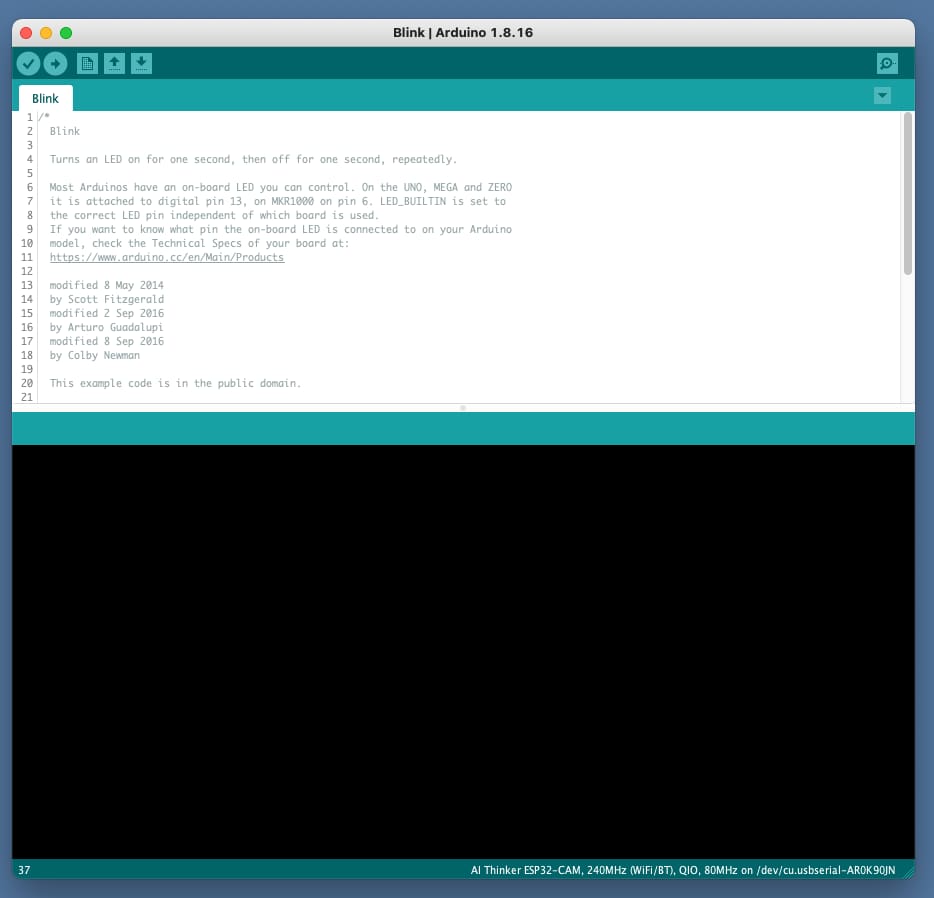 - Make sure the correct board and port are selected under