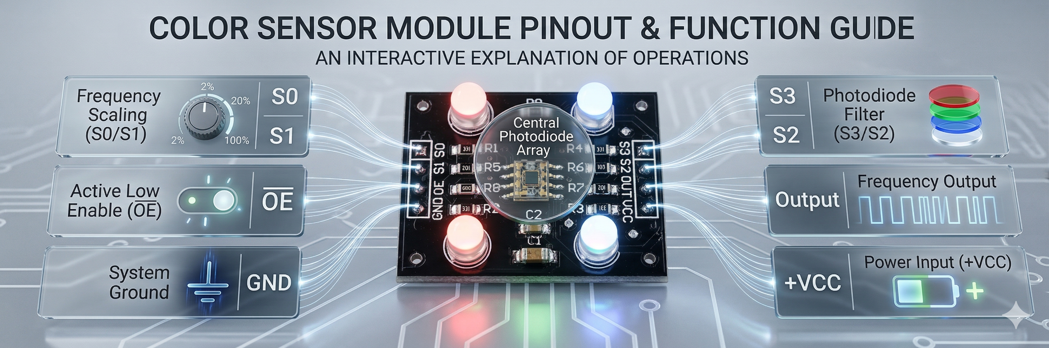 By using the control pins on the module, you can selectively activate the different color filters. The onboard oscillator then outputs a square wave whose frequency is directly proportional to the intensity of the selected color. This makes it incredibly easy to program color-sorting robots or automated quality-control mechanisms.